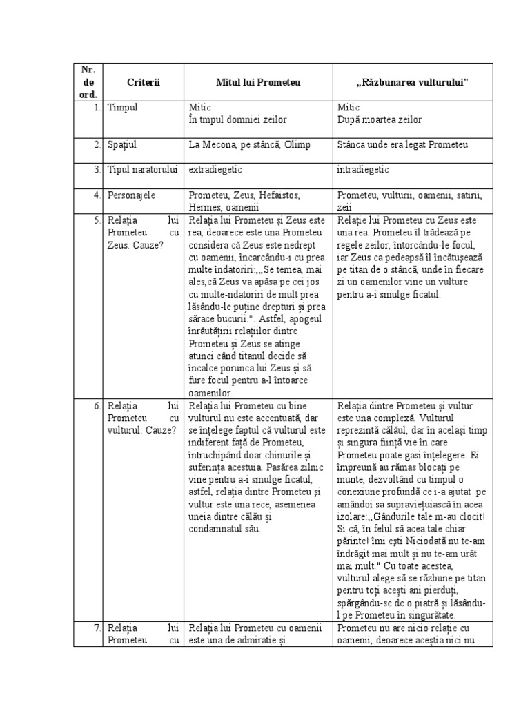 de Criterii Mitul lui Prometeu „Răzbunarea vulturului”