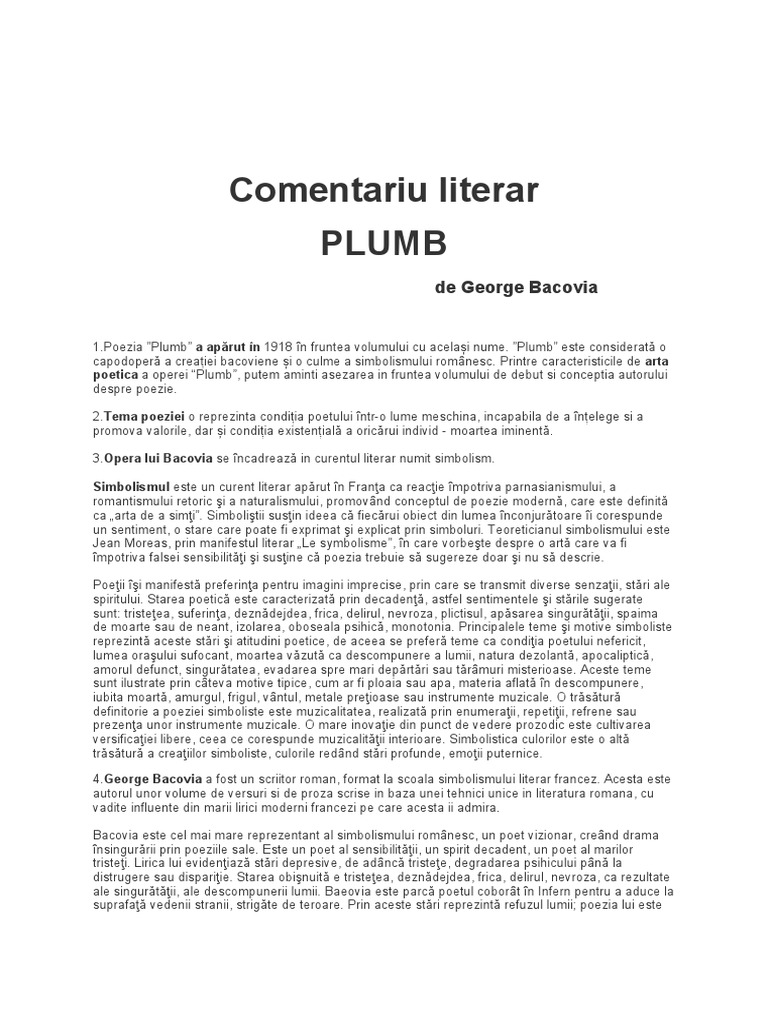 In concluzie, datorita elementelor prezentate mai sus, putem afirma ca “Plumb” de George Bacovia