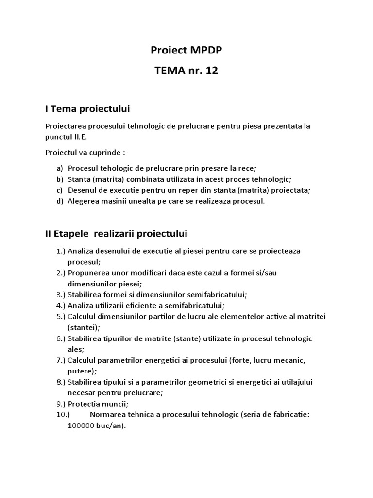 c) Desenul de executie pentru un reper din stanta (matrita) proiectata;
