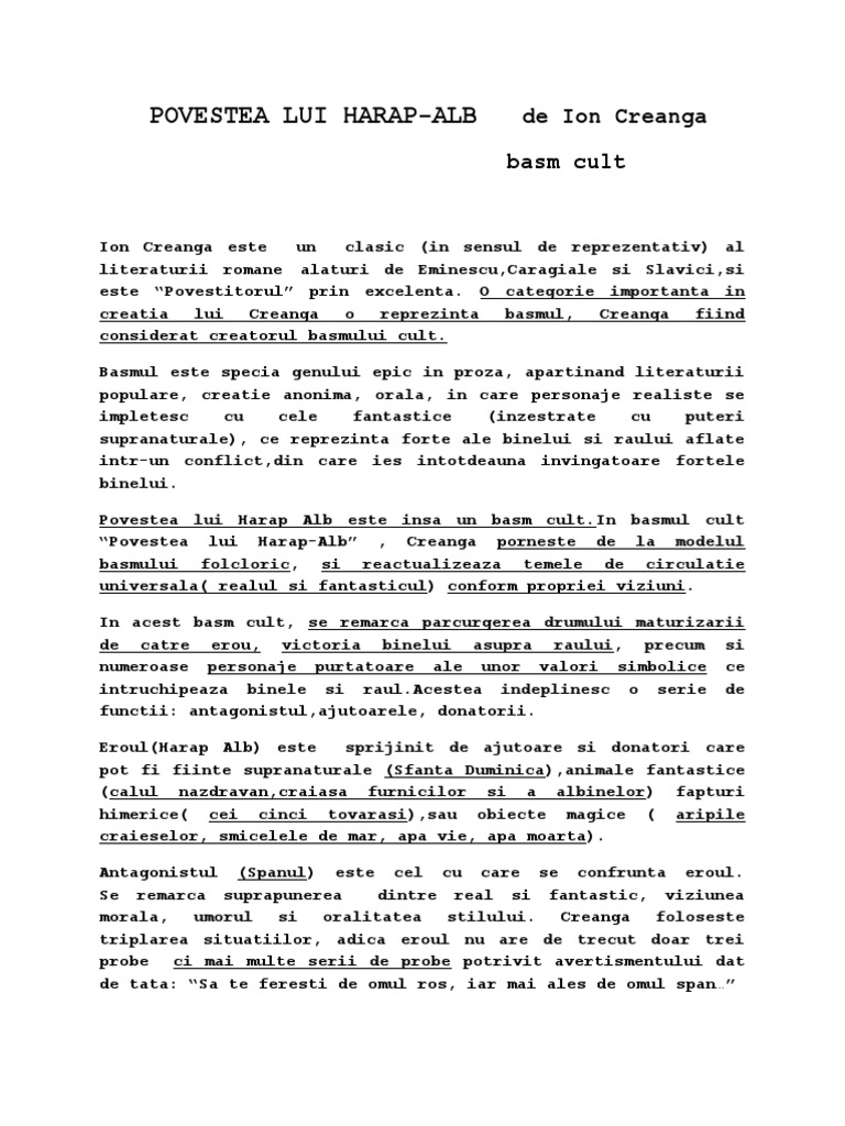 Povestea lui Harap Alb este insa un basm [Link] basmul cult