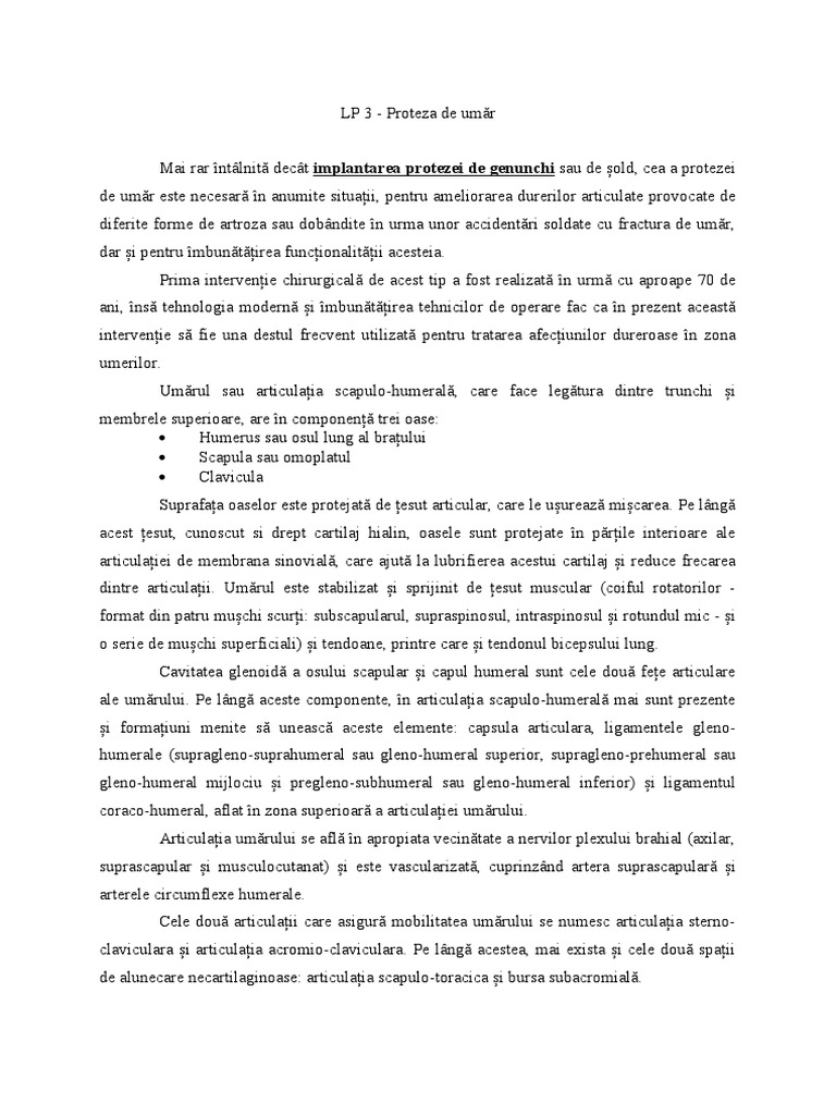 și a optimizării materialelor folosite pentru confecționarea protezelor de umăr.