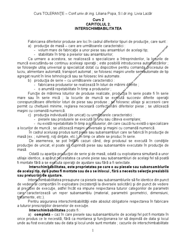 Curs TOLERANŢE – [Link]. Liliana Popa, [Link]. Livia Lazăr