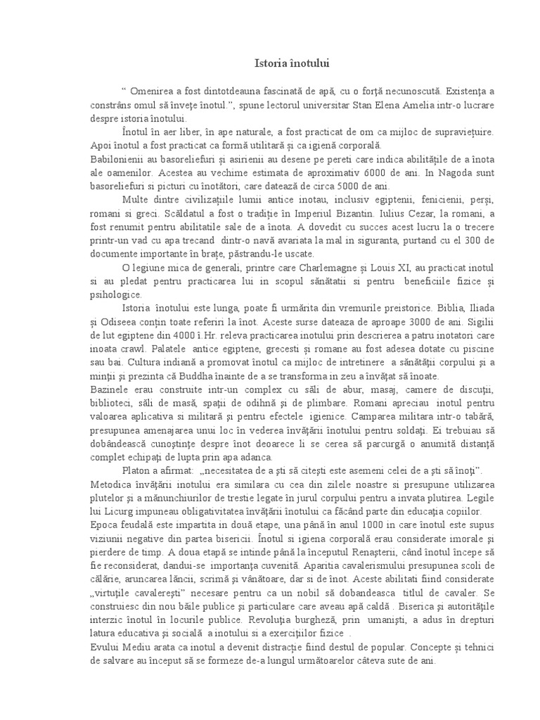 despre istoria înotului.