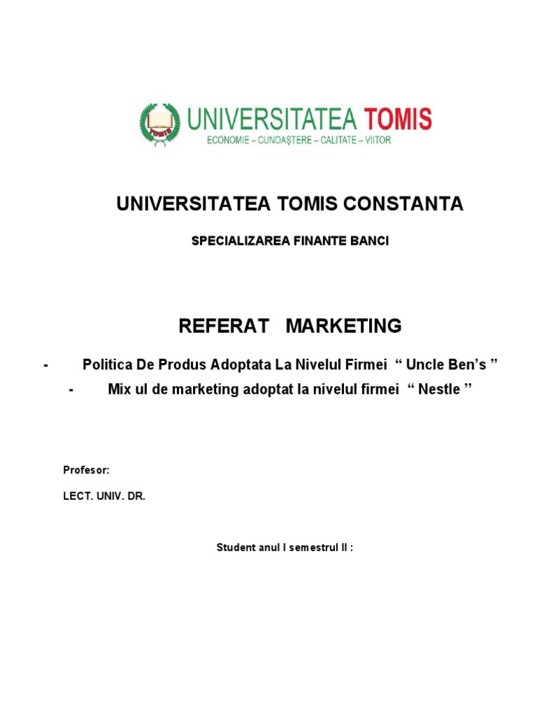 - Politica De Produs Adoptata La Nivelul Firmei “ Uncle Ben’s ”