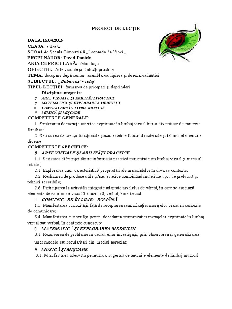 – buburuze. Obiectivul se considera realizat daca toti elevii urmaresc etapele de lucru si