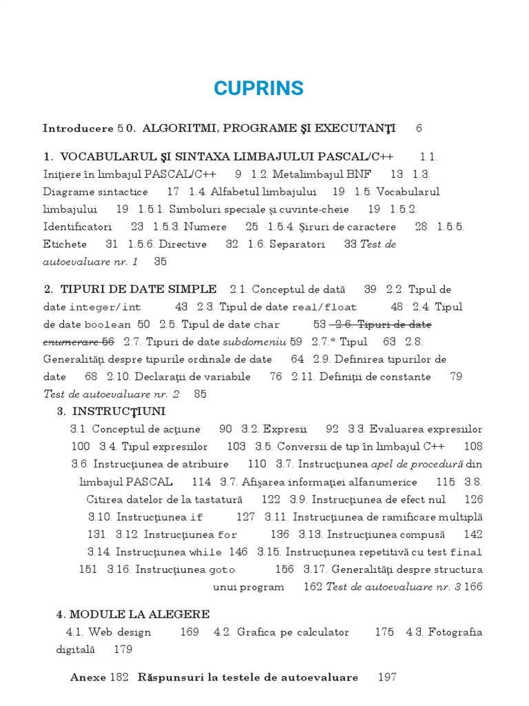 În manual, în scopuri didactice, sunt utilizate limbajele de programare PASCAL și