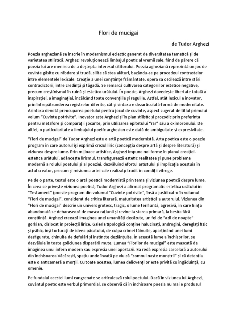 “Flori de mucigai” de Tudor Arghezi este o artă poetică modernistă. Arta poetica este o poezie