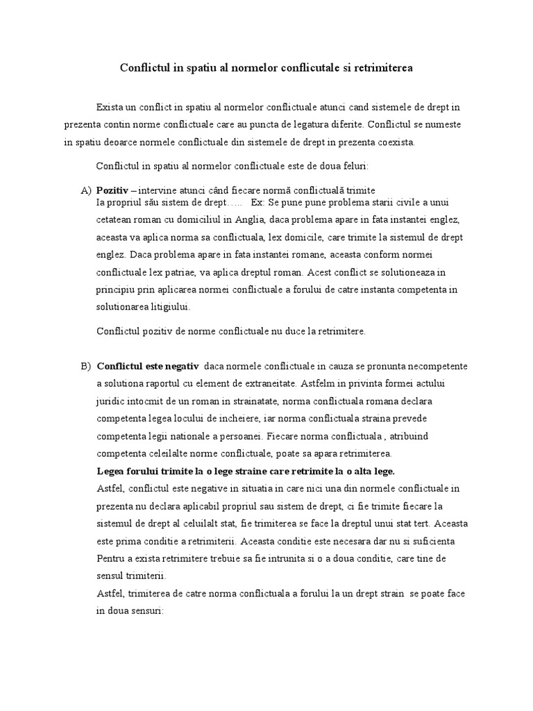 Conflictul in spatiu al normelor conflictuale este de doua feluri: