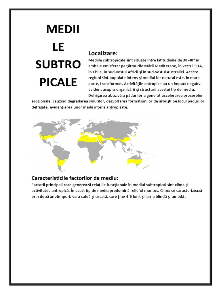 Mediile subtropicale sînt situate între latitudinile de 30-40° în