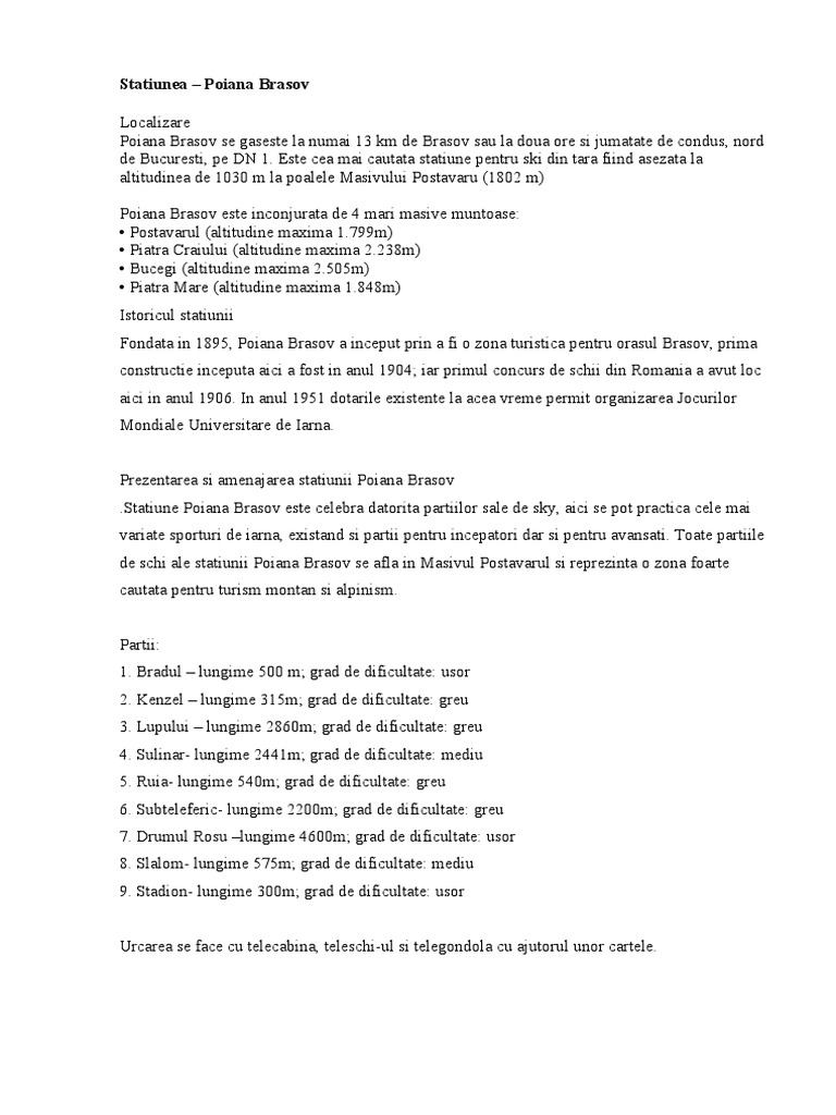 Prezentarea si amenajarea statiunii Poiana Brasov