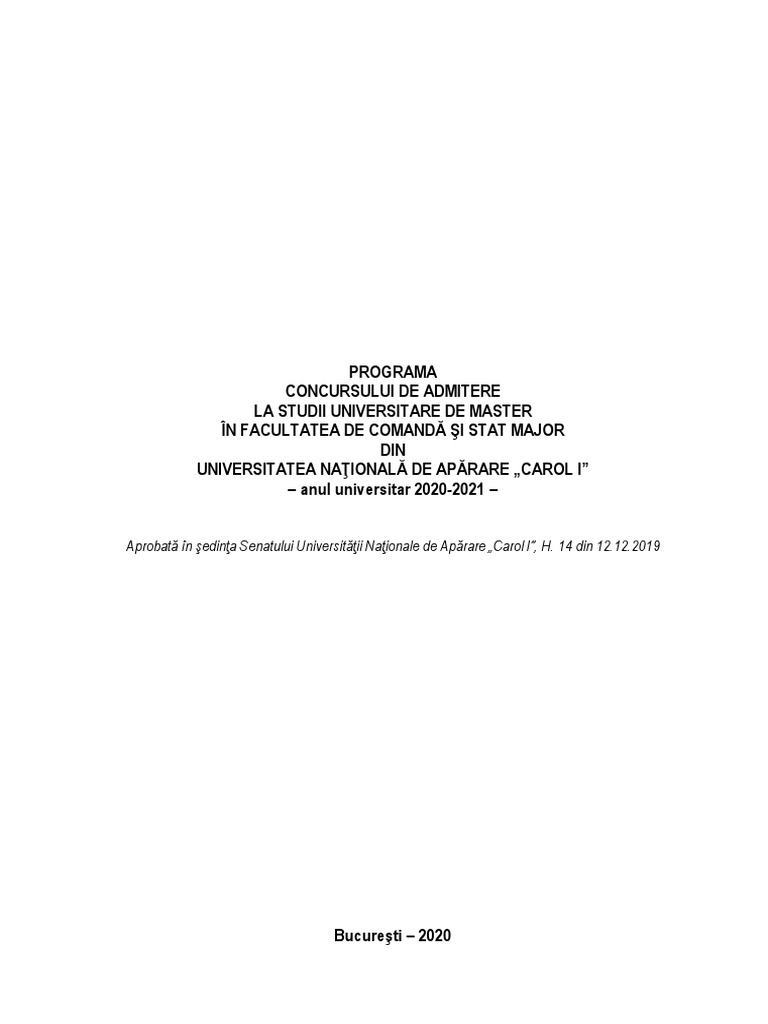 1. Actuala Programă a concursului de admitere în Facultatea de comandă şi stat