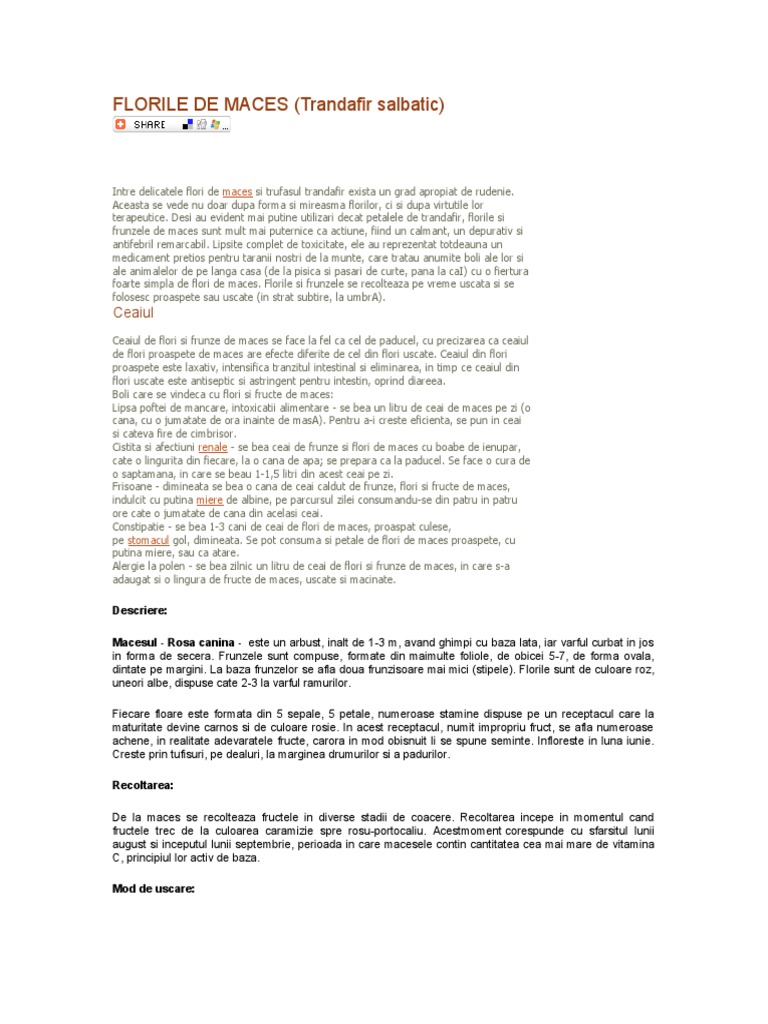 foarte simpla de flori de maces. Florile si frunzele se recolteaza pe vreme uscata si se