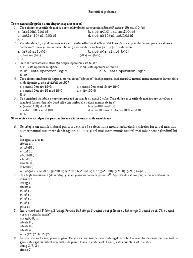 Să se scrie câte un algoritm pentru fiecare dintre enunțurile următoare