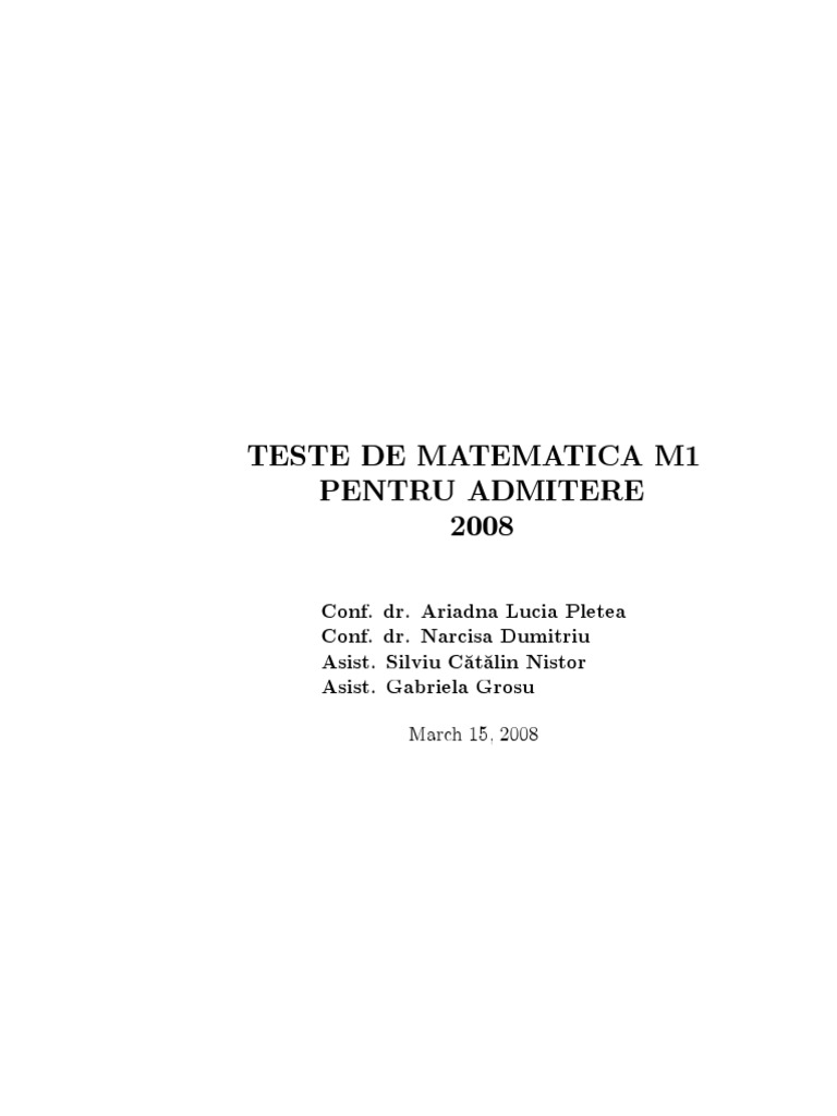 Teste de matematică pentru admitere 2005,