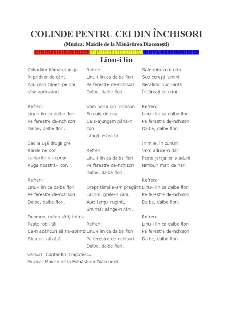 Peste robii tăi Refren: Linu-i lin ca dalbe flori