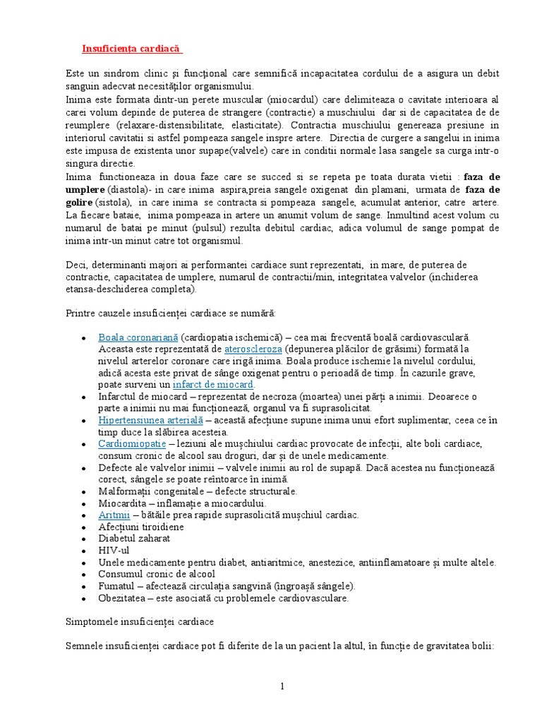 lentă progresivă ca în valvulopatii. Printre cele mai frecvente cauze de insuficienţă cardiacă