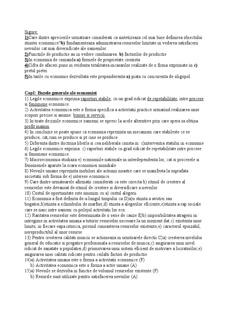 CapI: Bazele generale ale economiei: