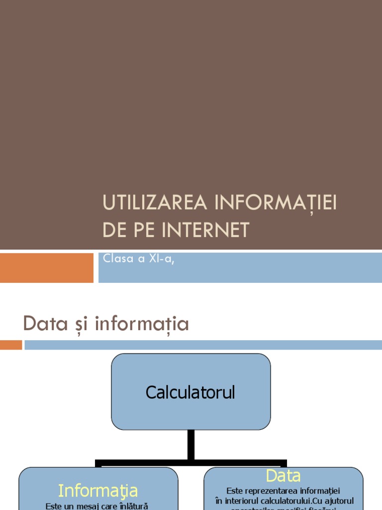 ¤ Informaţia propriu-zisă:stocată în bazele de date