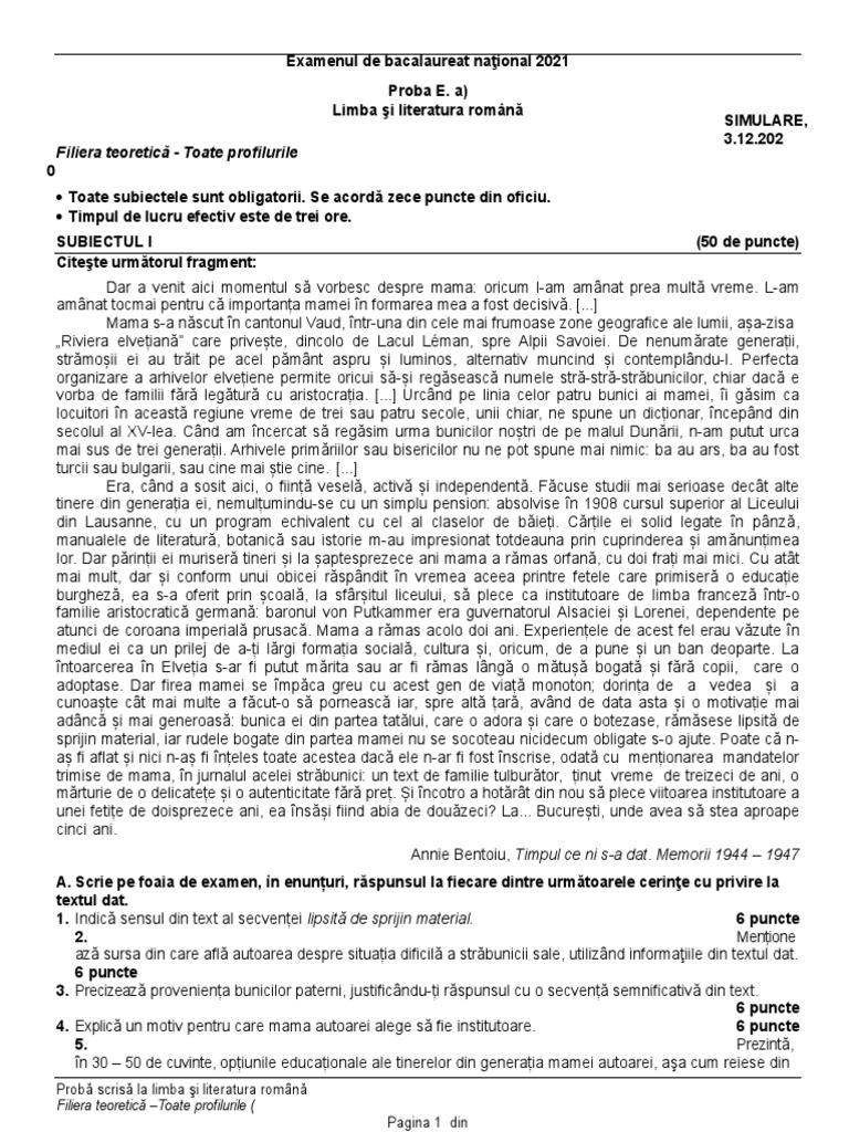 SUBIECTUL I (50 de puncte)