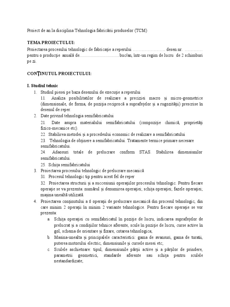 Proiect de an la disciplina Tehnologia fabricării produselor (TCM)