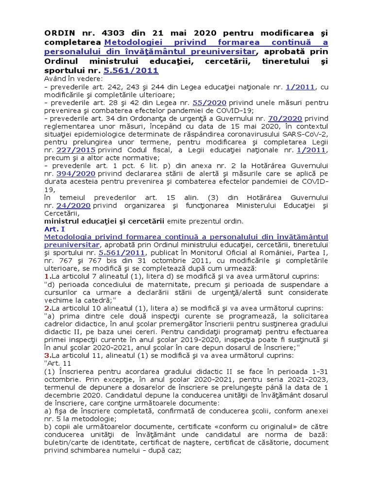 ORDIN nr. 4303 din 21 mai 2020 pentru modificarea şi