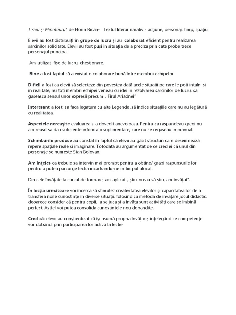 de Florin Bican- Textul literar narativ - acțiune, personaj, timp, spațiu