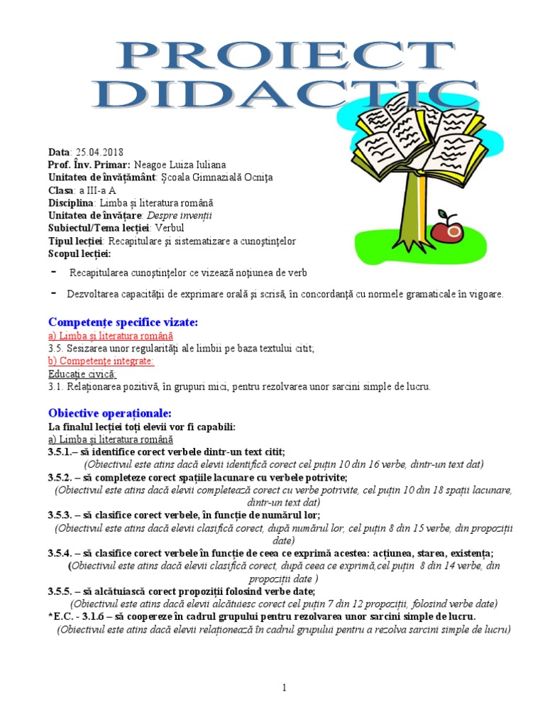 3.5.1.– să identifice corect verbele dintr-un text citit;