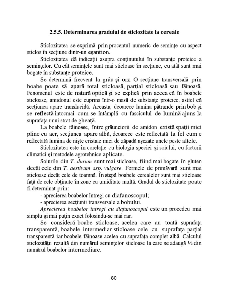 sticloasă. Seminţele sticloase sunt translucide în secţiune. Se determină gradul de