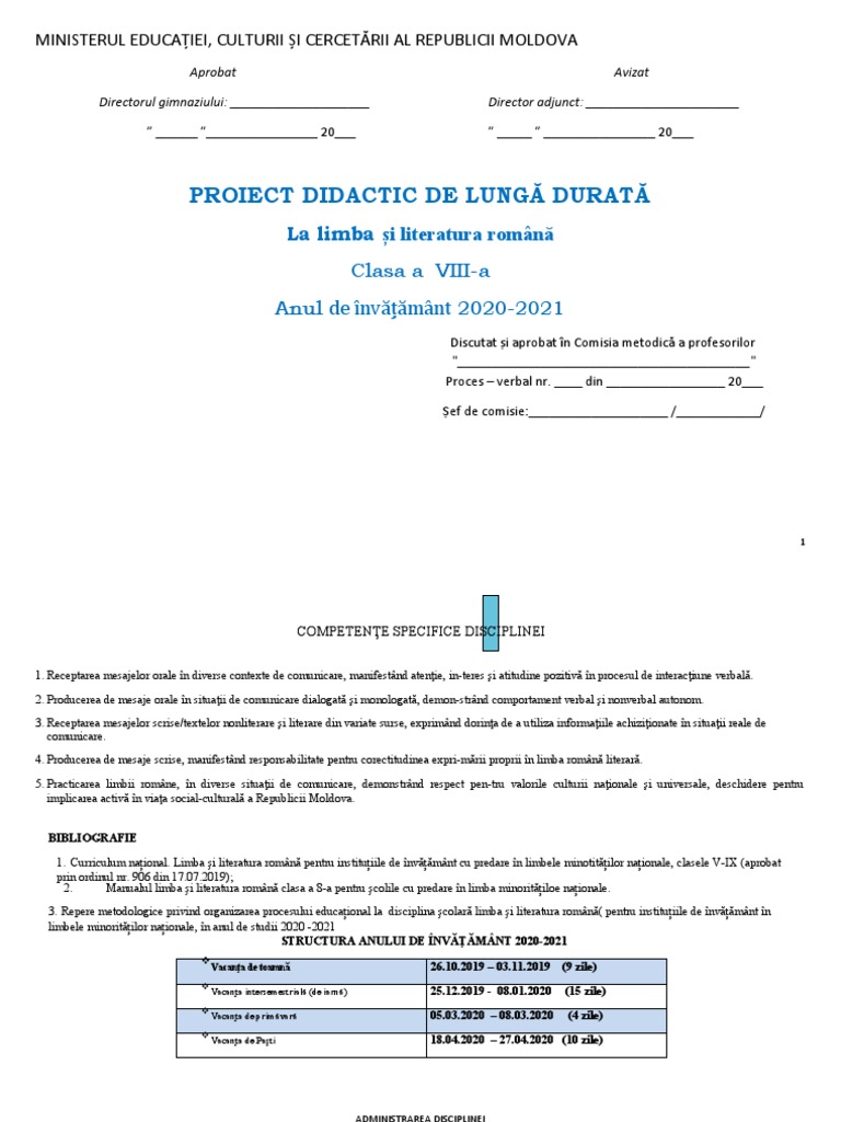 1. Curriculum național. Limba și literatura română pentru instituțiile de învățământ cu predare în limbele minotităților naționale, clasele V-IX (aprobat