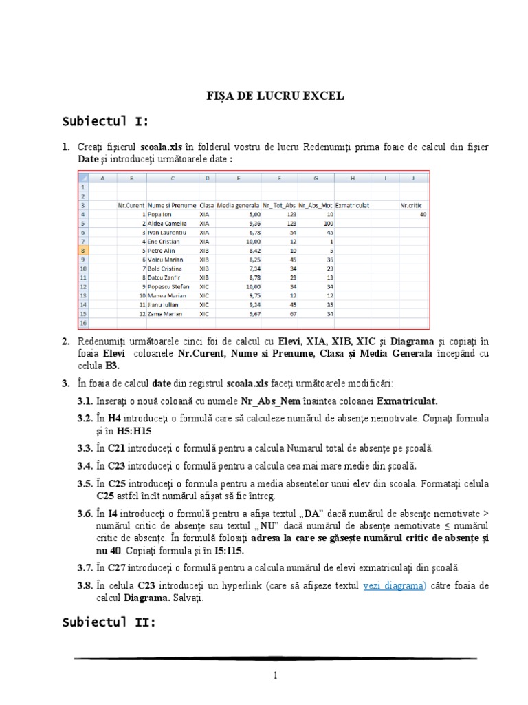 1. Creaţi fişierul [Link] în folderul vostru de lucru Redenumiţi prima foaie de calcul din fişier
