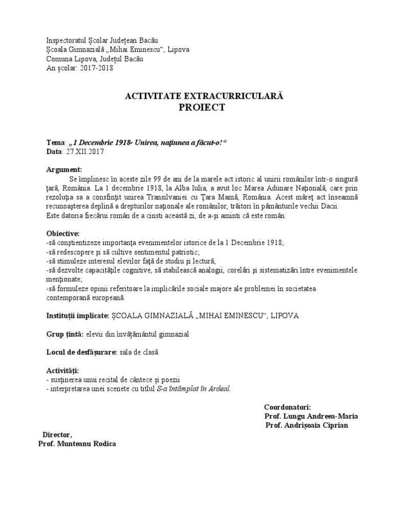 -să conştientizeze importanţa evenimentelor istorice de la 1 Decembrie 1918;