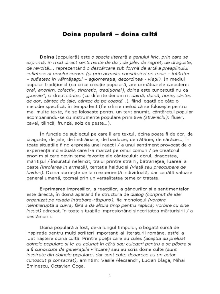 luat naștere doina cultă. Printre poeții care au cules (aceștia au preluat