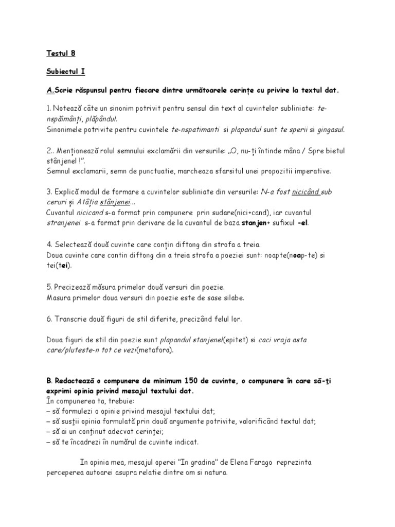 1. Notează câte un sinonim potrivit pentru sensul din text al cuvintelor subliniate: te-
