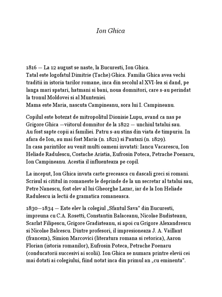 1816 — La 12 august se naste, la Bucuresti, Ion Ghica.