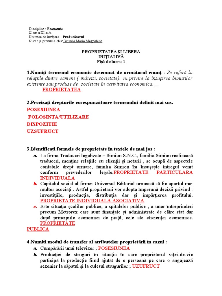 [Link]ţi modul de transfer al atributelor proprietăţii în cazul :