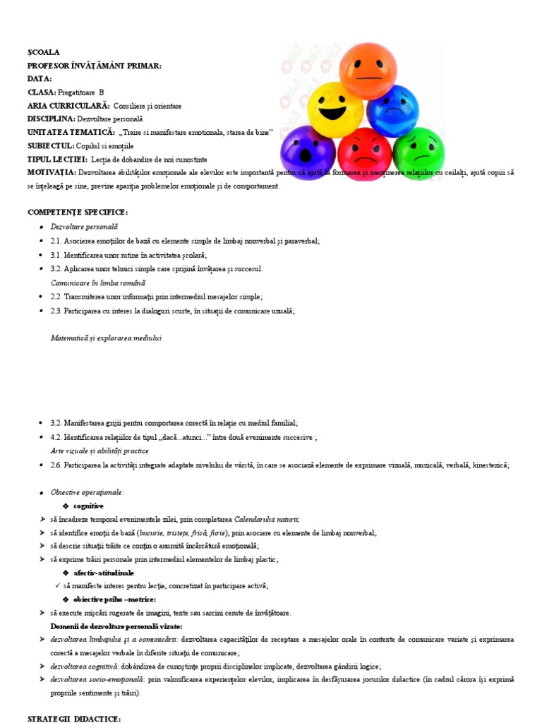 UNITATEA TEMATICĂ: ,,Traire si manifestare emotionala, starea de bine”
