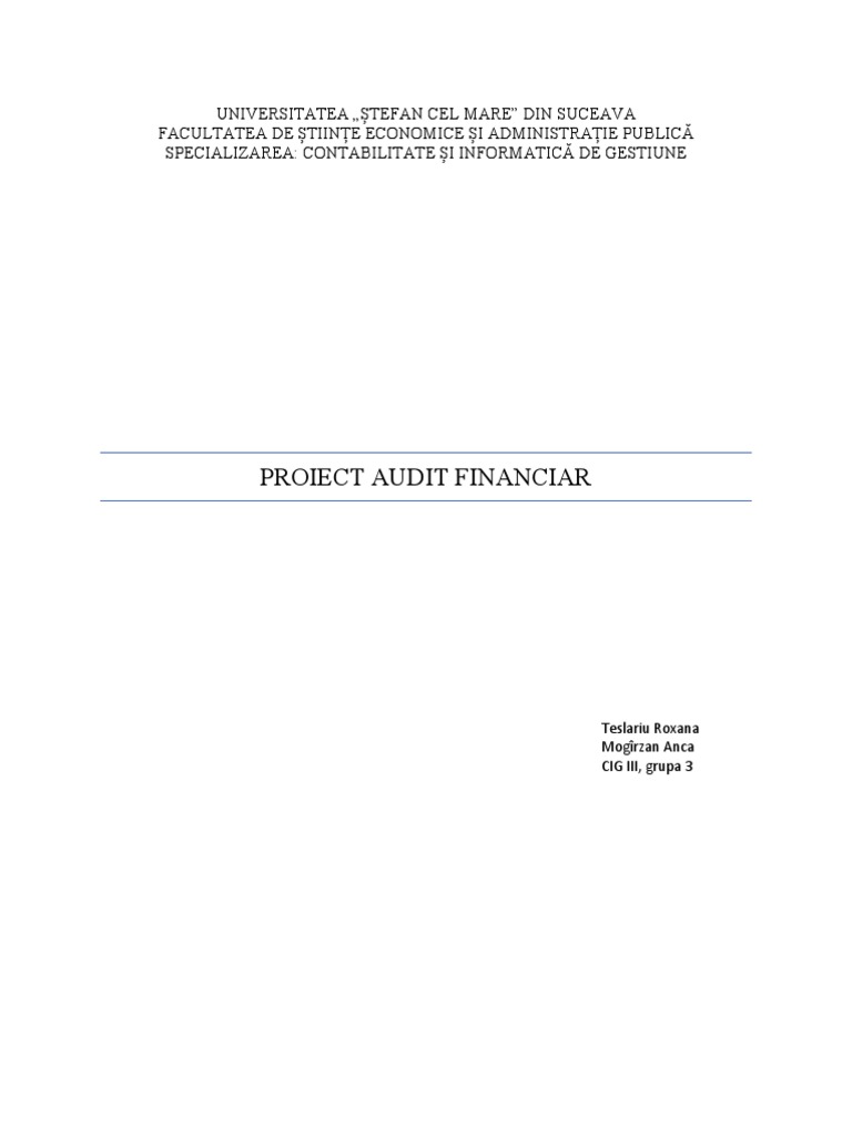 V-am fi recunoscători dacă aţi acorda tot sprijinul dvs. auditorilor noştri de la SC Audit SRL,