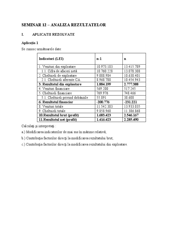 SEMINAR 12 – ANALIZA REZULTATELOR