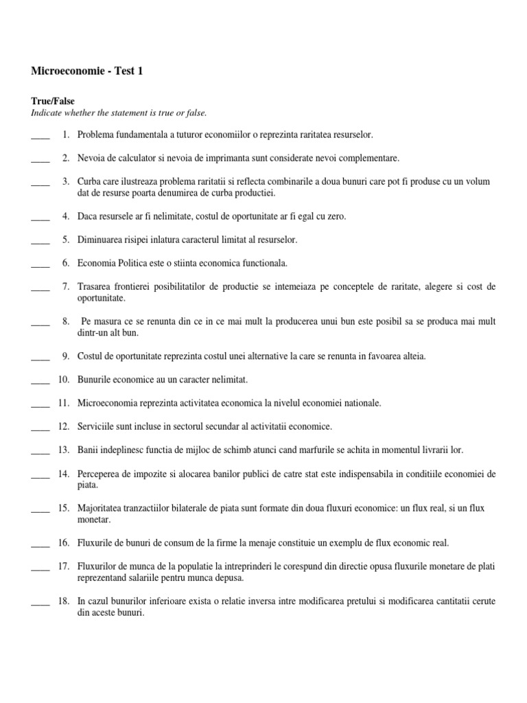 ____ 14. Perceperea de impozite si alocarea banilor publici de catre stat este indispensabila in conditiile economiei de