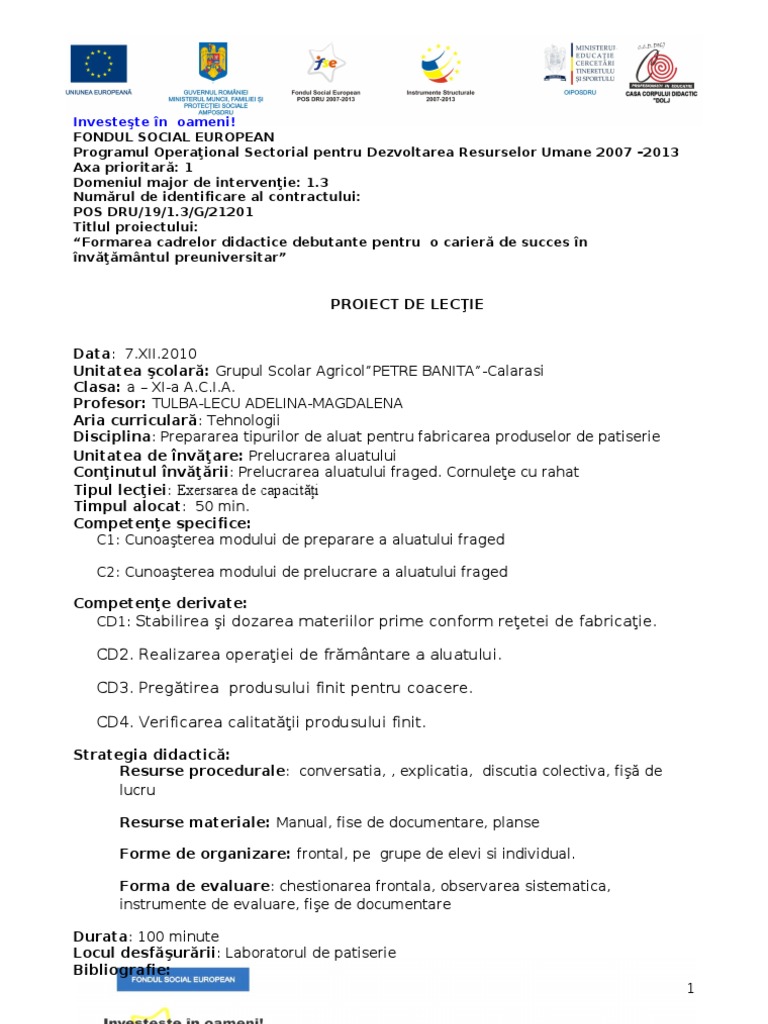 Unitatea de învăţare: Prelucrarea aluatului