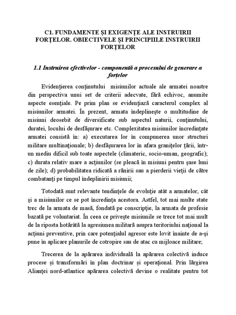 bază a pregătirii forţelor. Instruirea este un proces complex şi unitar,