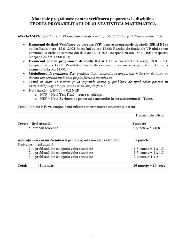 Testul (0,8 din NF) va conţine două subiecte cu următoarea structură şi barem: