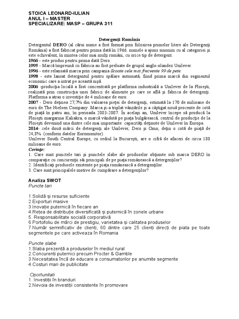 1. Care sunt punctele tari şi punctele slabe ale produselor obţinute sub marca DERO în