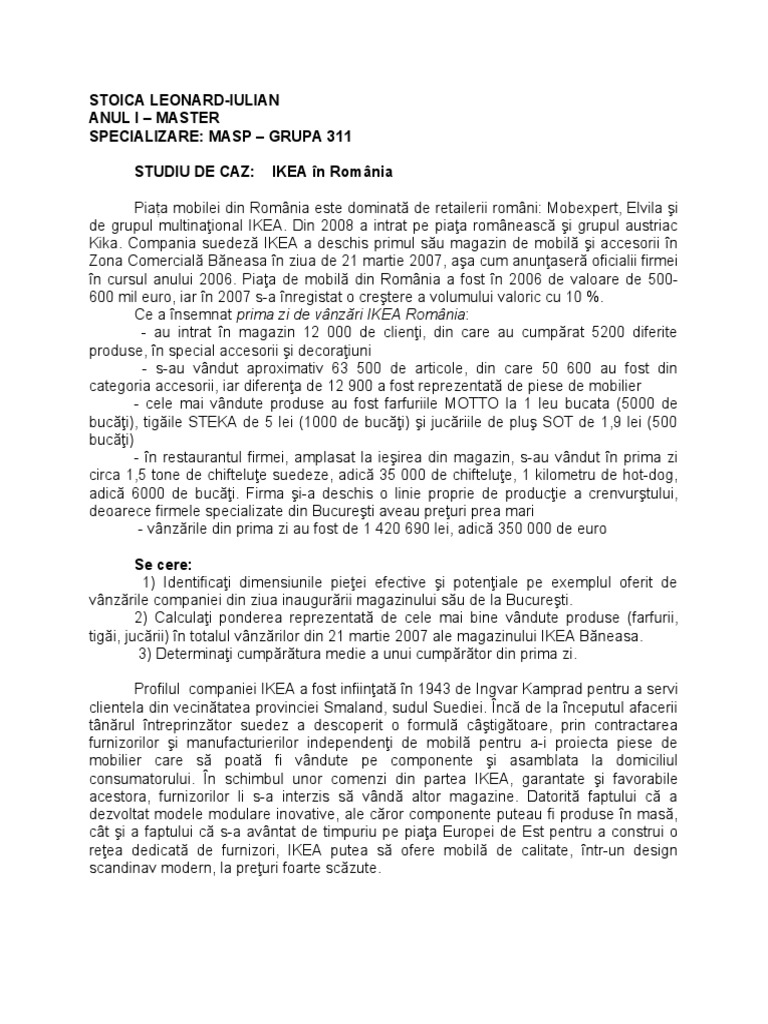 1) Identificaţi dimensiunile pieţei efective şi potenţiale pe exemplul oferit de