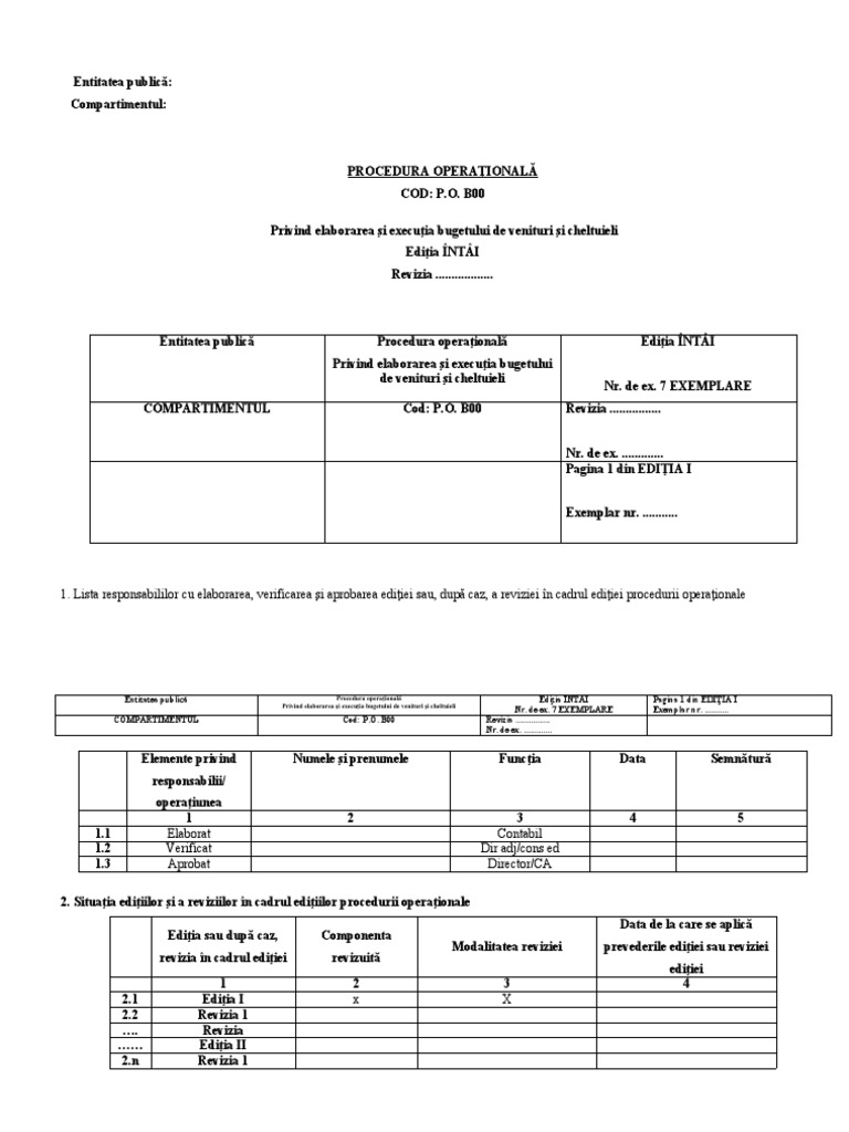Entitatea publică Procedura operaţională Ediţia ÎNTÂI Pagina 1 din EDIŢIA I