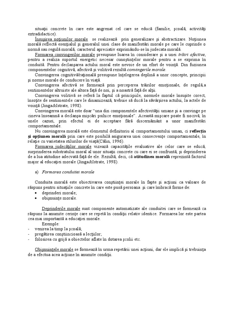 a) Formarea conduitei morale