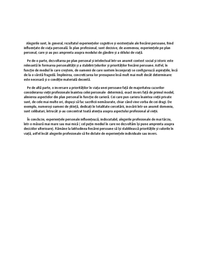 deciziilor ulterioare). Rămâne la latitudinea fiecărei persoane să își stablilească prioritățile și valorile în