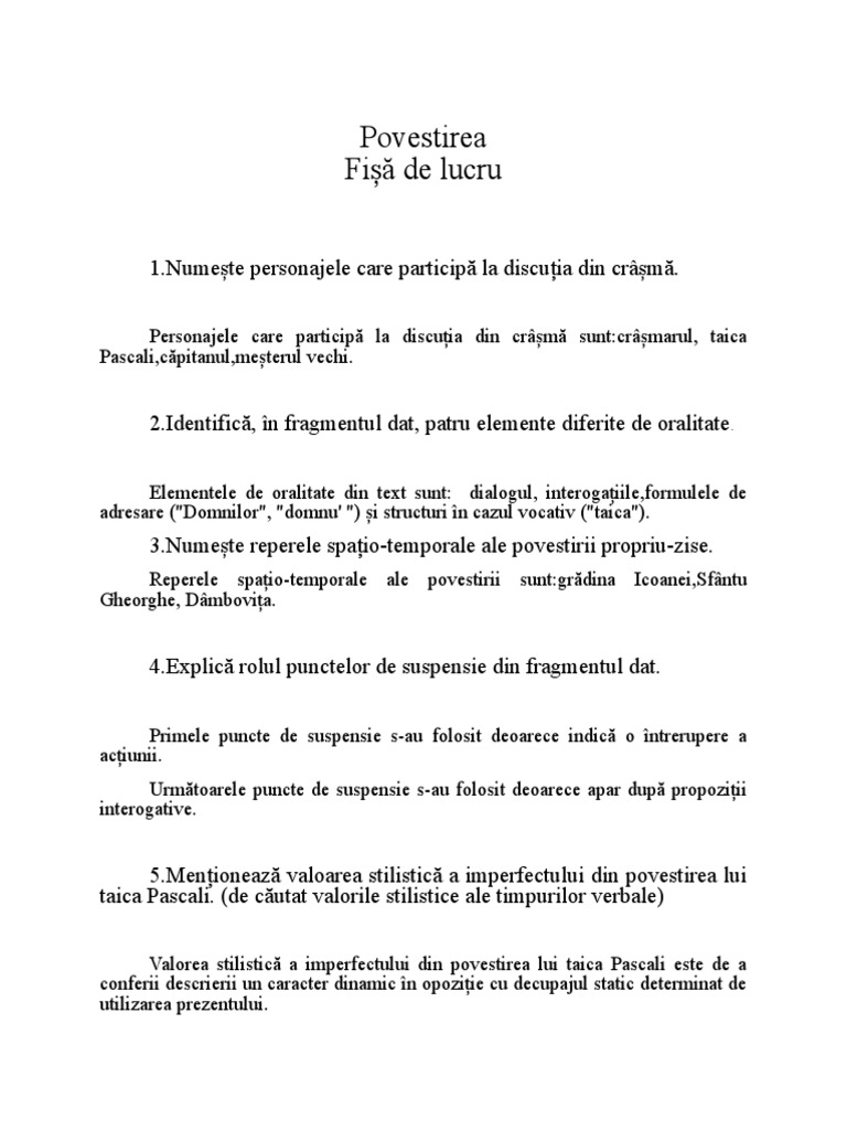 [Link]ționează valoarea stilistică a imperfectului din povestirea lui