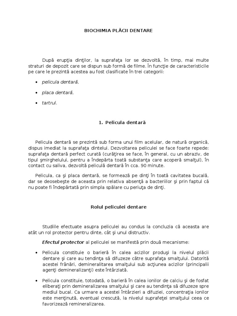 BIOCHIMIA PLĂCII DENTARE