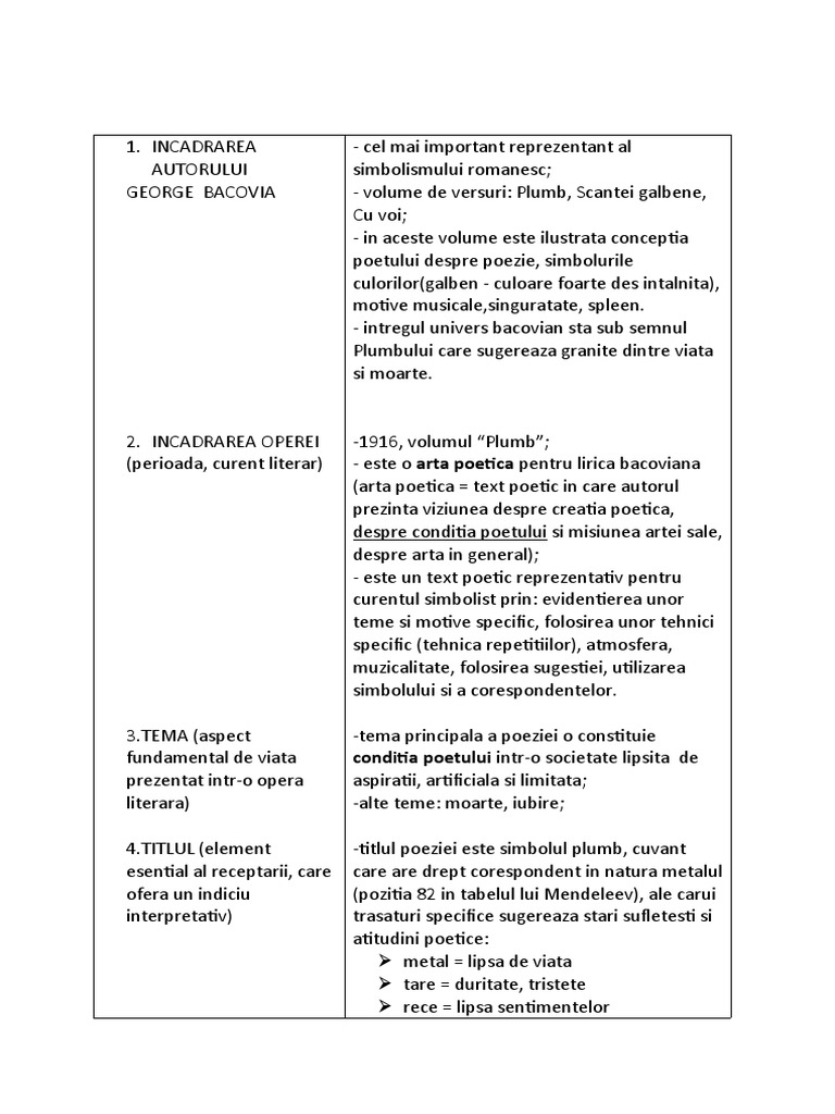 [Link] (element -titlul poeziei este simbolul plumb, cuvant